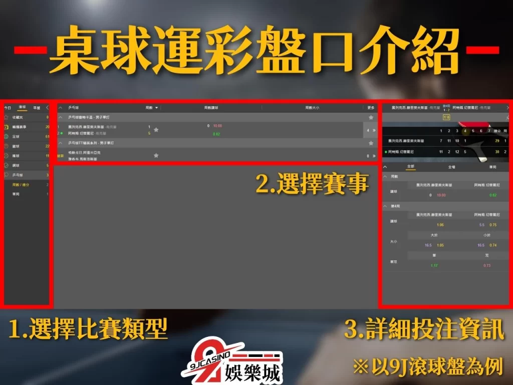 因此接下來教大家桌球運彩怎麼看,還是以全台最大的地下桌球運彩投注平台《9J娛樂城》來進行教學。